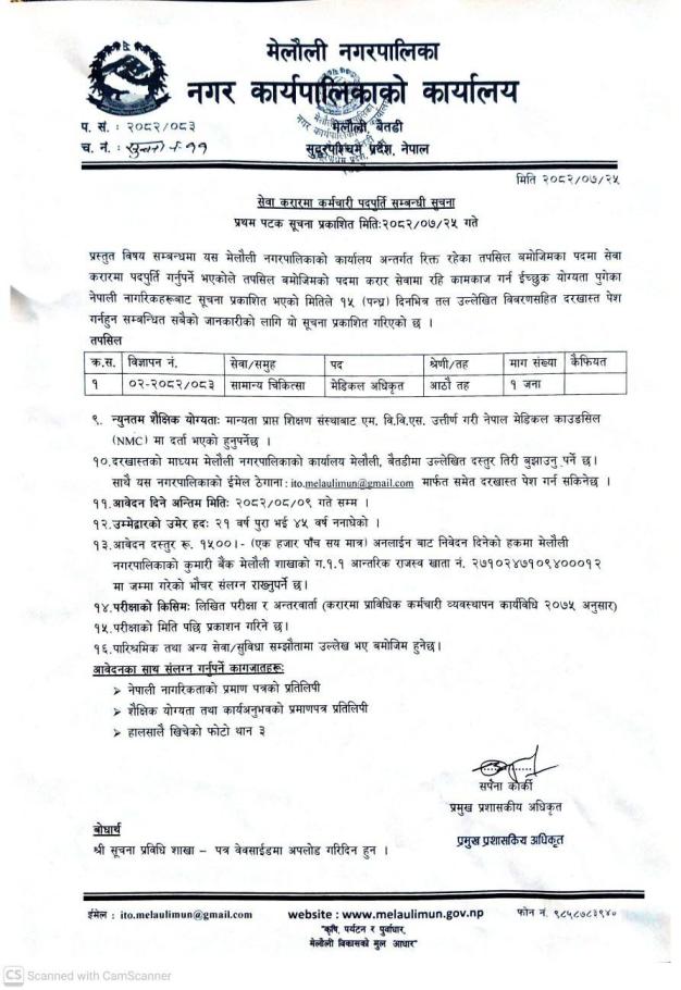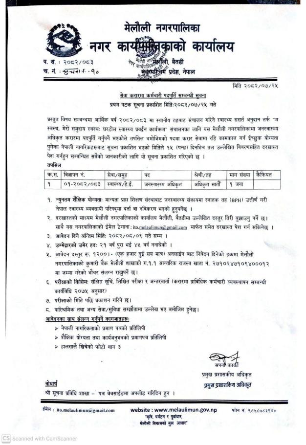 मेडिकल अधिकृत र जन स्वास्थ्य अधिकृत सेवा करारमा लिने सम्बन्धी सूचना ।